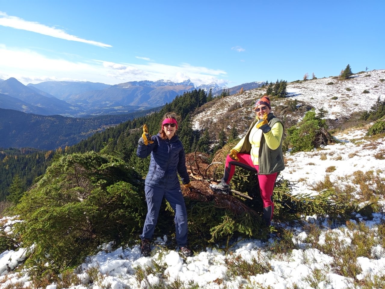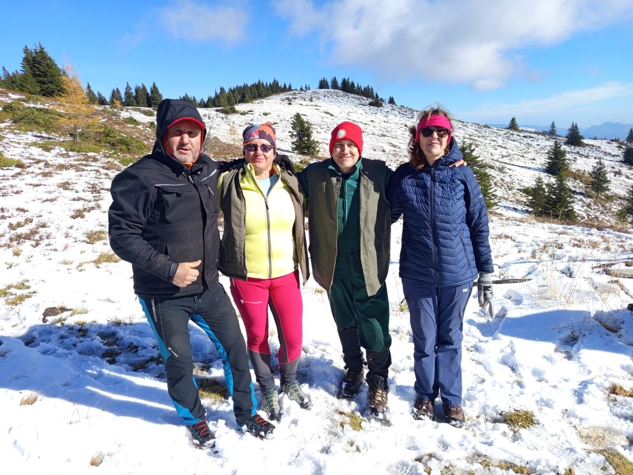 V okviru Naravovarstvene zveze Smrekovec, kjer je prisotno tudi PD Šoštanj, je v soboto, 25.10.2025, potekalo čiščenje lesne zarasti z namenom ohranjanja travišč in njim prilagojene biodiverzitete. Šoštanjčani, Topolščani in Velenjčani smo se ob 7. uri dobili pred Ipponom v Šoštanju in se družno v treh avtomobilih odpeljali proti Smrekovcu. V moj avto sta prisedla preostala dva člana PD Šoštanj, ki smo tokrat zastopali naše društvo, Mitja Tajnik in Lučka Tovornik, ter še soseda Vera Goltnik.