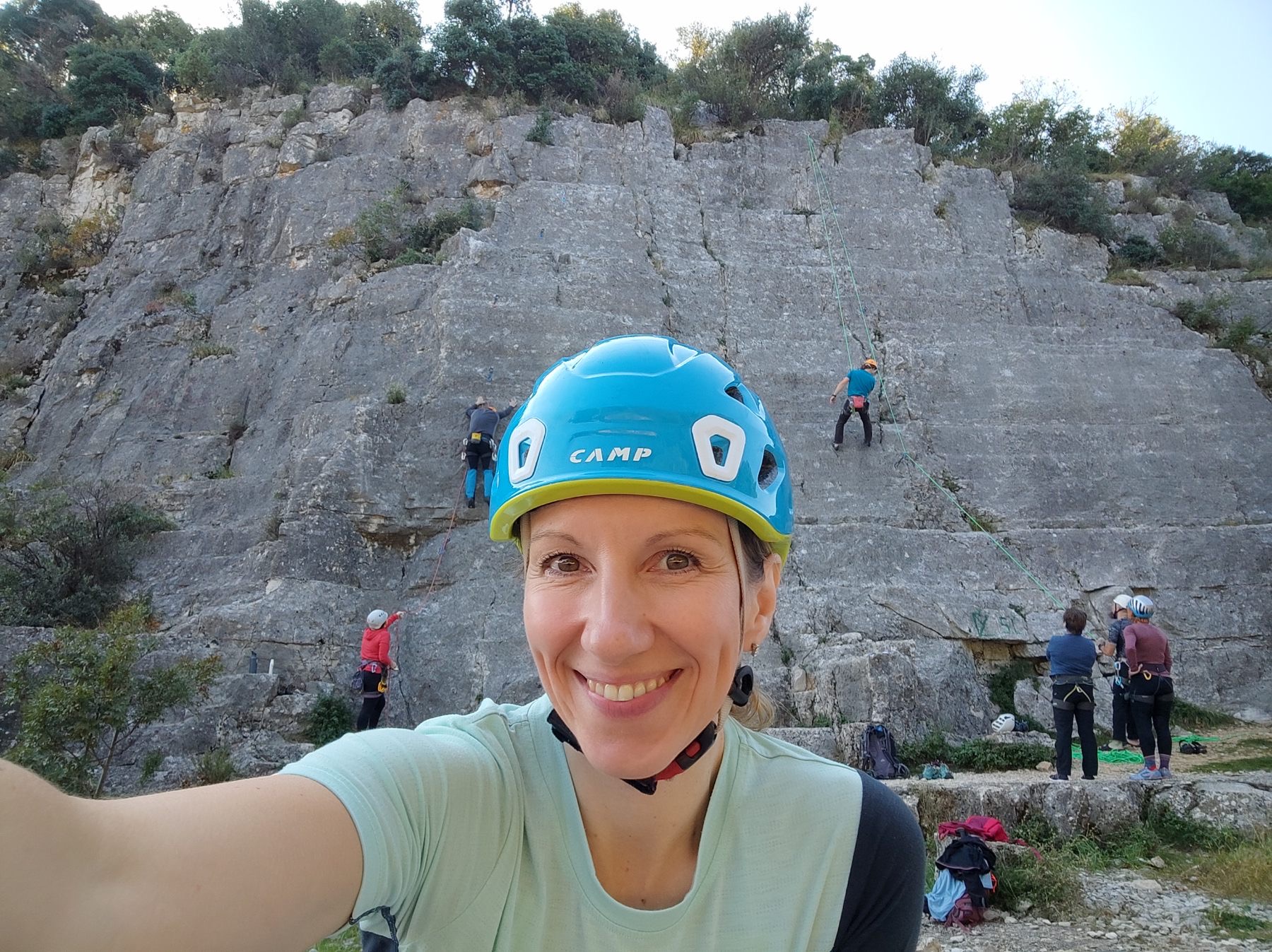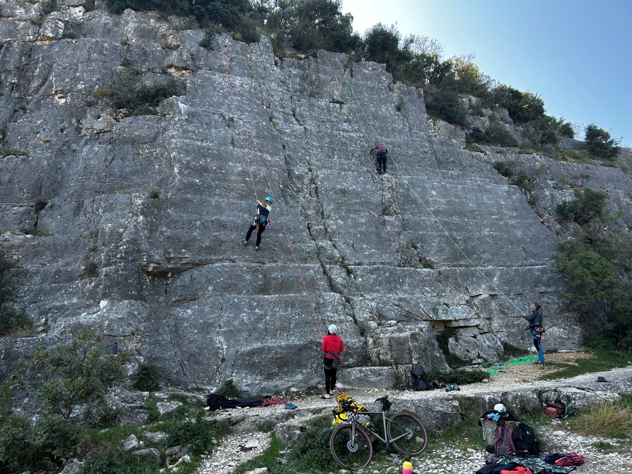 Oba dneva smo dopoldne preživeli v plezališču v Rovinju v neposredni bližni morja. Stene so ponujale raznoliko izbiro smeri, primerne tako za začetnike kot za bolj izkušene plezalce. V prijetnih razmerah smo utrjevali plezalne veščine, spoznavali nove smeri in si medsebojno pomagali pri varovanju ter izboljševanju tehnike. Vzdušje je bilo ves čas odlično, polno smeha, spodbud in pravšnje doze adrenalina.